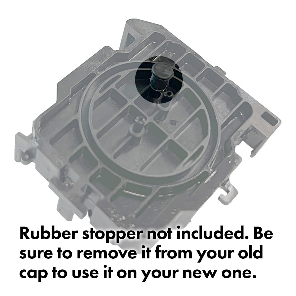 Note: Rubber stopper not included (see 2nd image). When replacing the cap, be sure to remove it from your old cap to put it on your new one.