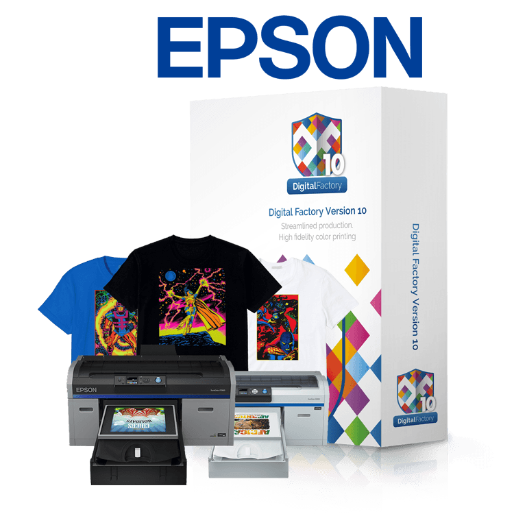 Ideal for users looking for all the benefits of Digital Factory, who use Epson™ Printers, such as the F2000 or F2100. Please note that support for the Epson SC F-3000/3070 printer is not included and requires that it be added to this package.