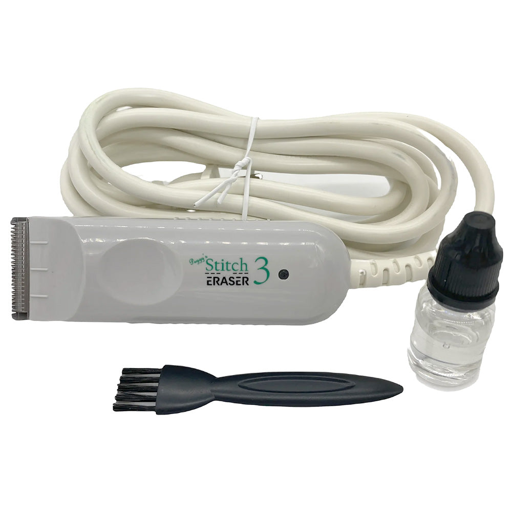 Holding the device with the blade facing down, the bobbin threads are trimmed on the reverse side of an embroidered design. Top threads then can easily be removed by brushing them away. Download the product manual below for more information. Be sure to check out the video tutorial, too.