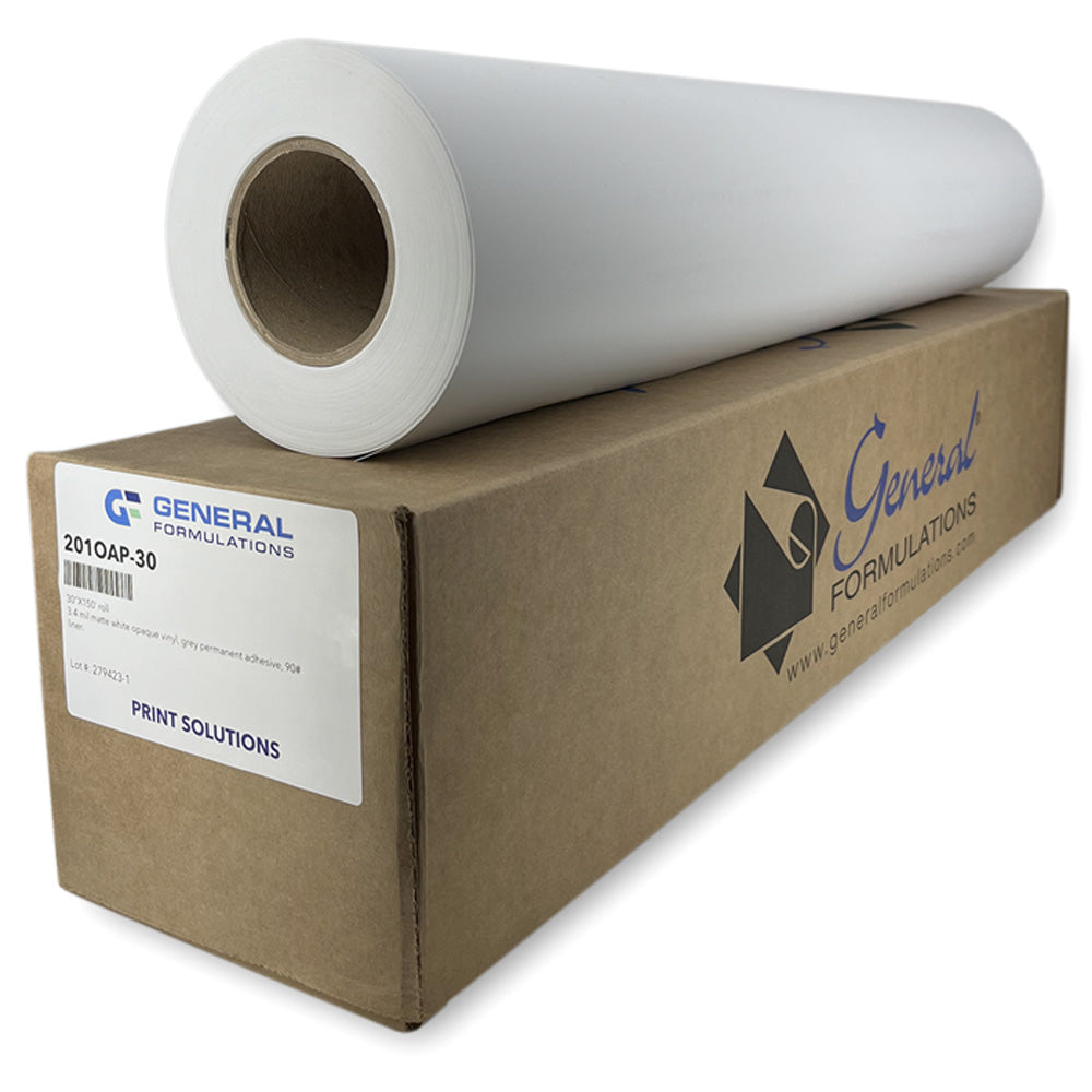 GF 201OAP is designed for interior or exterior signage, decals, name plates, point-of-purchase displays and had added opacity with the grey adhesive.