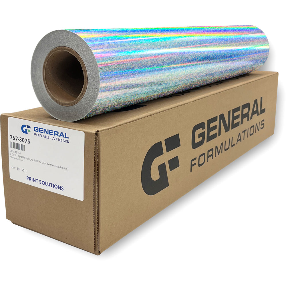 GF 767 Sparkle Holographic is great for decals, POP, retail displays, holiday graphics, packaging, labels and so much more!