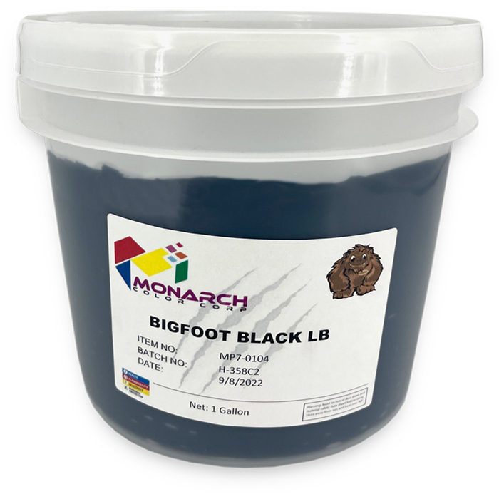 Print Bigfoot Black LB straight from the container through mesh ranging from 86 to 236 mc without modifications of the viscosity. Use finer mesh counts for softest hand and good opacity. Stir ink before use.