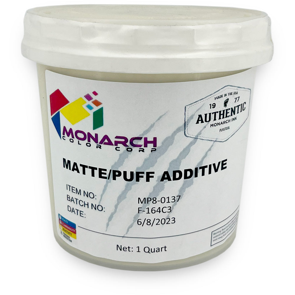 Application: Great for creating a tri-dimensional effect when curing your plastisol ink. Add around 10%-20% of Matte/Puff Additive to a standard plastisol ink of choice. Great for 3D effects and adding dimension to your prints for screen printing ink.