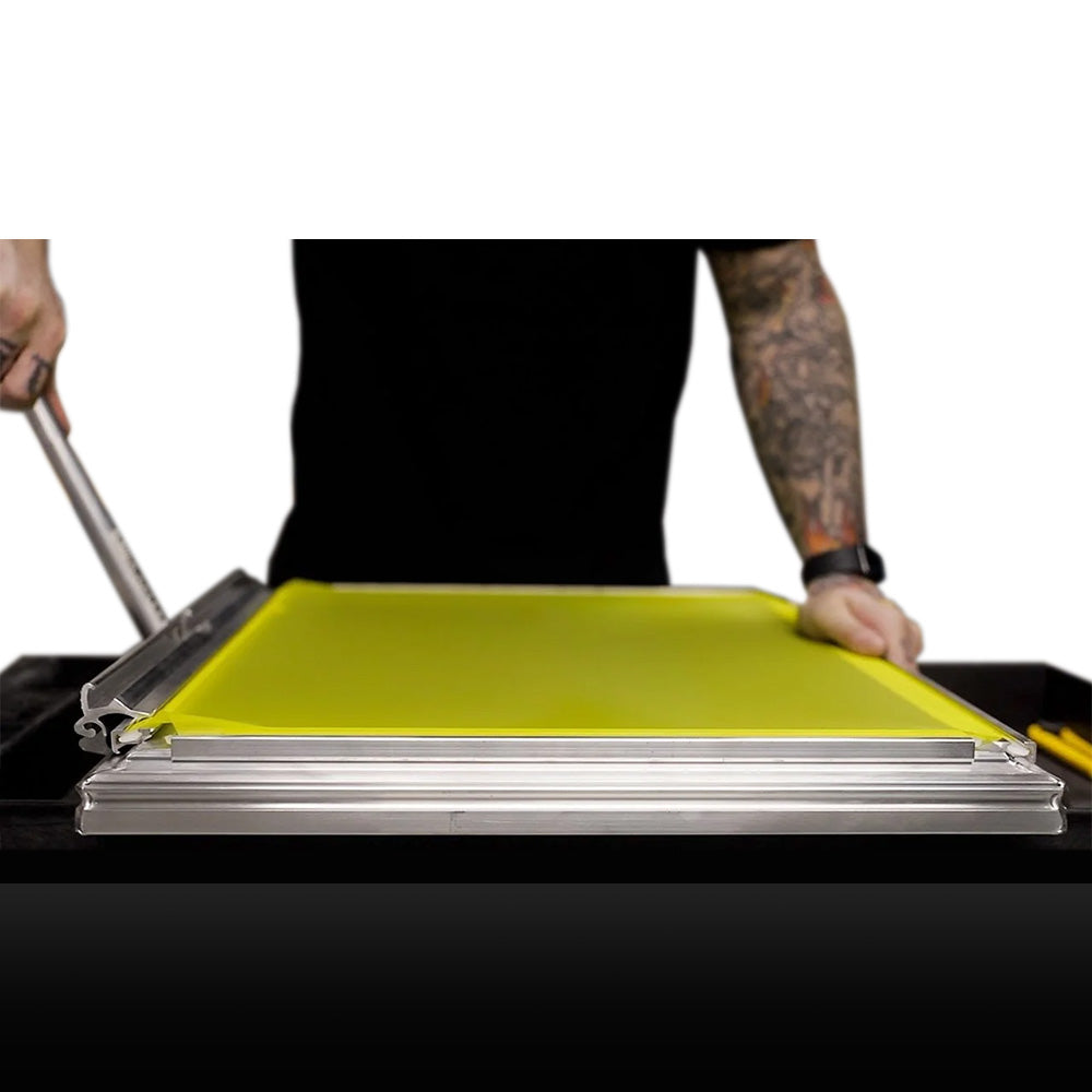 There are very good reasons the Eco Frame is quickly gaining popularity in our industry. Eco Frames are constructed from a superior grade of aluminum for strength, consistency, and durability. All that combined allows these frames to stretch and hold mesh tension, meeting or exceeding manufacturers specs, that will be as good if not better than the static frames currently on the market. While static aluminum frames have dominated the market for their lightweight and overall efficiency. Eco Frames will not only continue that success, but also create a more efficient workflow with a system that can quickly and easily either swap out or replace mesh panels. Remeshing an Eco Frame is done in a matter of minutes (not weeks like it has been with shipping old frames and waiting for them to be shipped back!), Allowing you to put your frames back into production quickly and efficiently. This process increases your green footprint as you no longer need to buy and ship replacement screens or ship old frames out to be remeshed, then shipped back to you. Not to mention, the Eco Frames and Eco Panels are BOTH 100% recyclable!