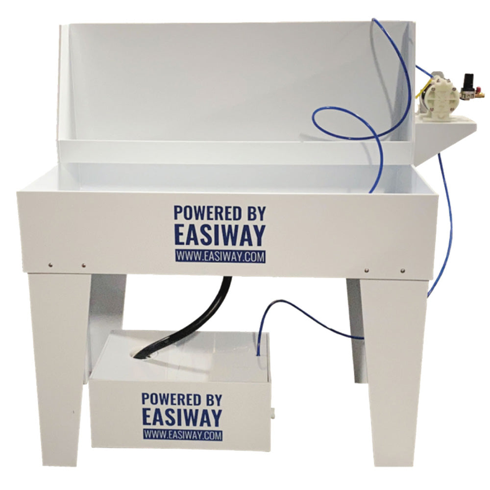 3. EasiSolv will begin to flow out of the brush and into the booth, draining back into the recirculating reservoir tank.