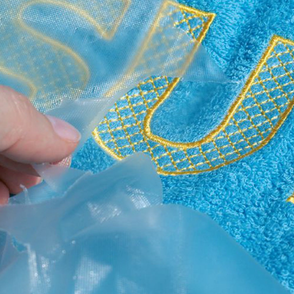 - After the embroidery process is complete, tear-away the larger areas of Topping inside and outside of the design.