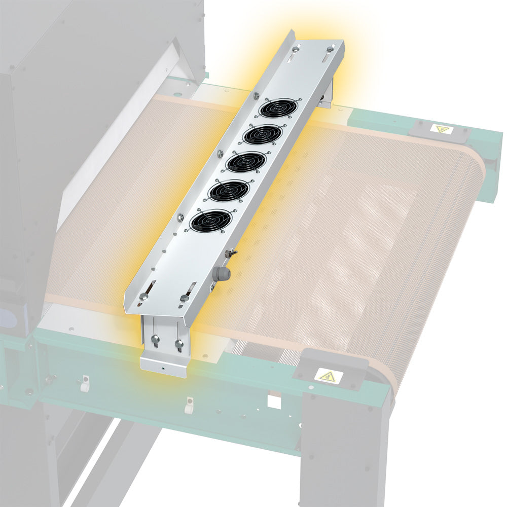- Cools substrate to prevent hot ink from sticking or cools down for handling