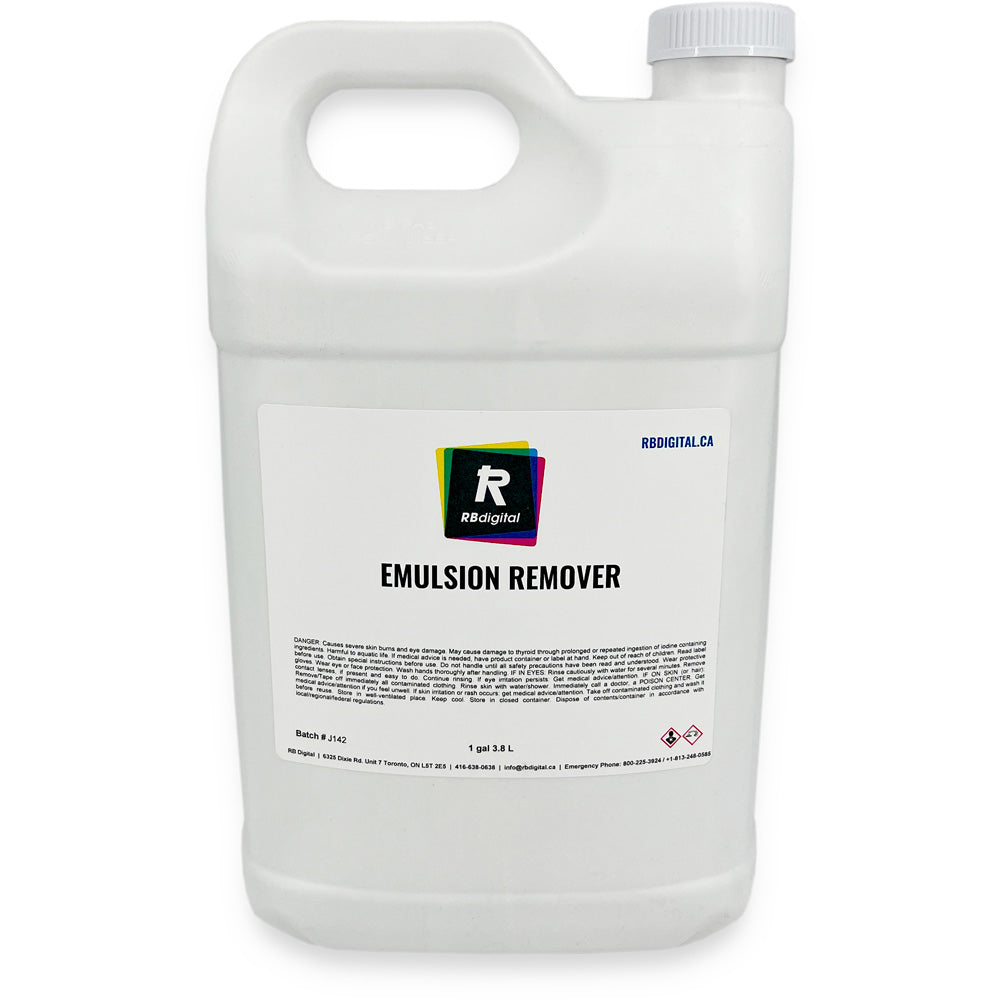 - Apply RB Emulsion Remover Concentrate by brush, wipe, scrub pad or spray to both sides of emulsion/film, after ink has been removed.