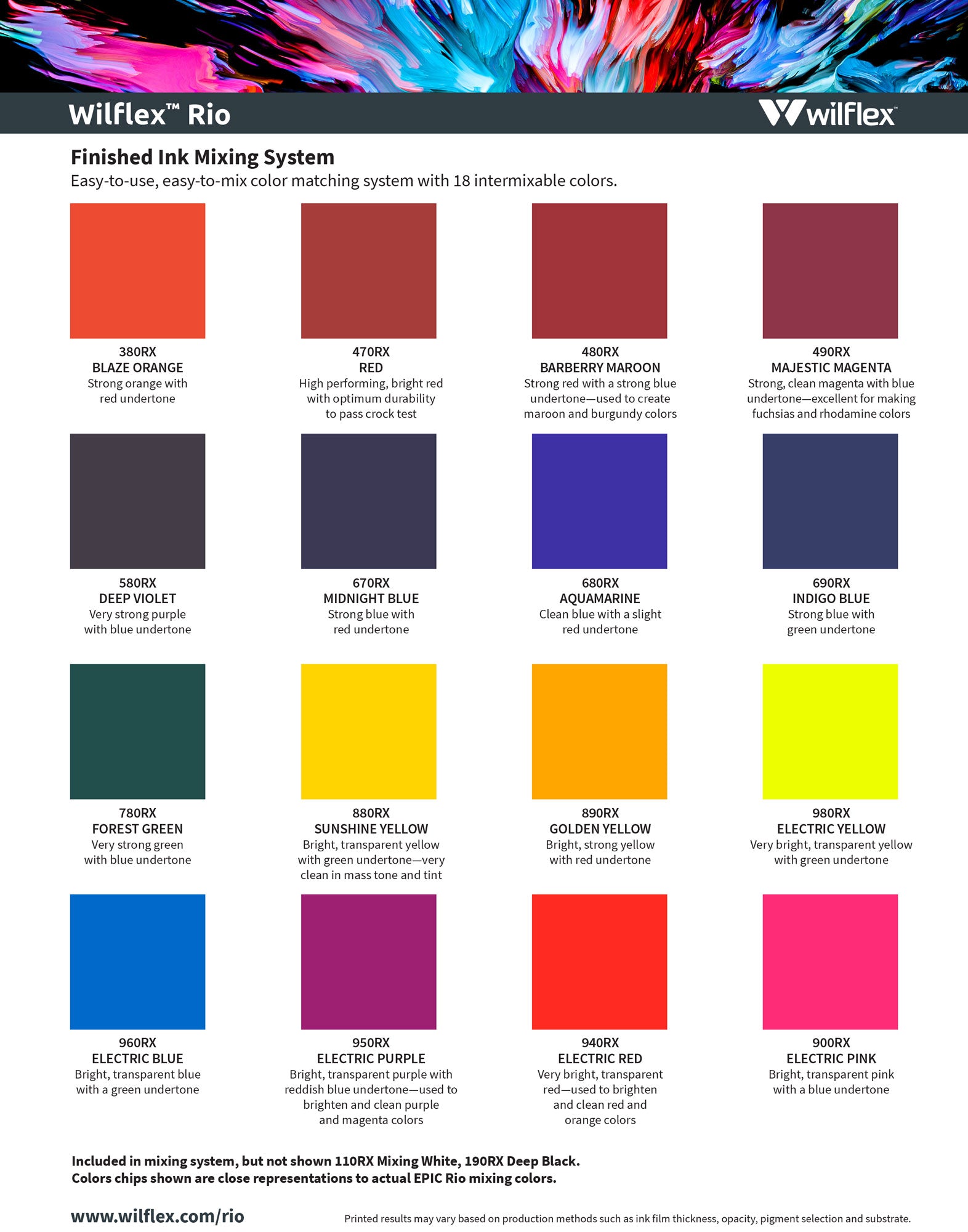 - Any application not referred in this product information bulletin should be pre-tested or consultation sought with Wilflex Technical Services Department prior to printing.
