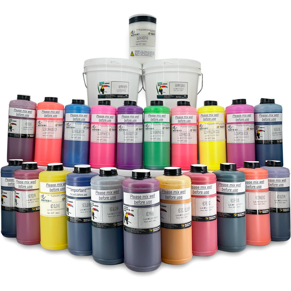 The Matsui Easy Print Water Based Neo Pigment Starter Kit With Glow Colours has everything you need to start printing! Learn more about each product included in the kit below.