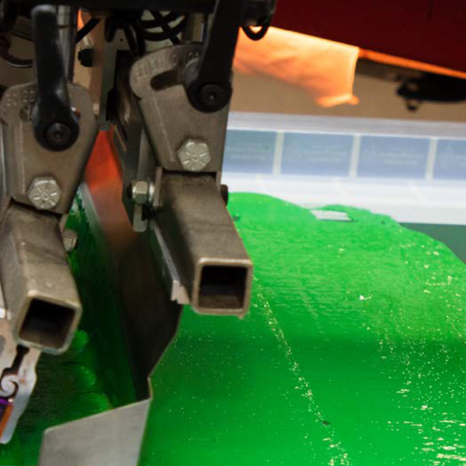 • Use consistent, high-tensioned screen mesh and sharp edged squeegees for best print results