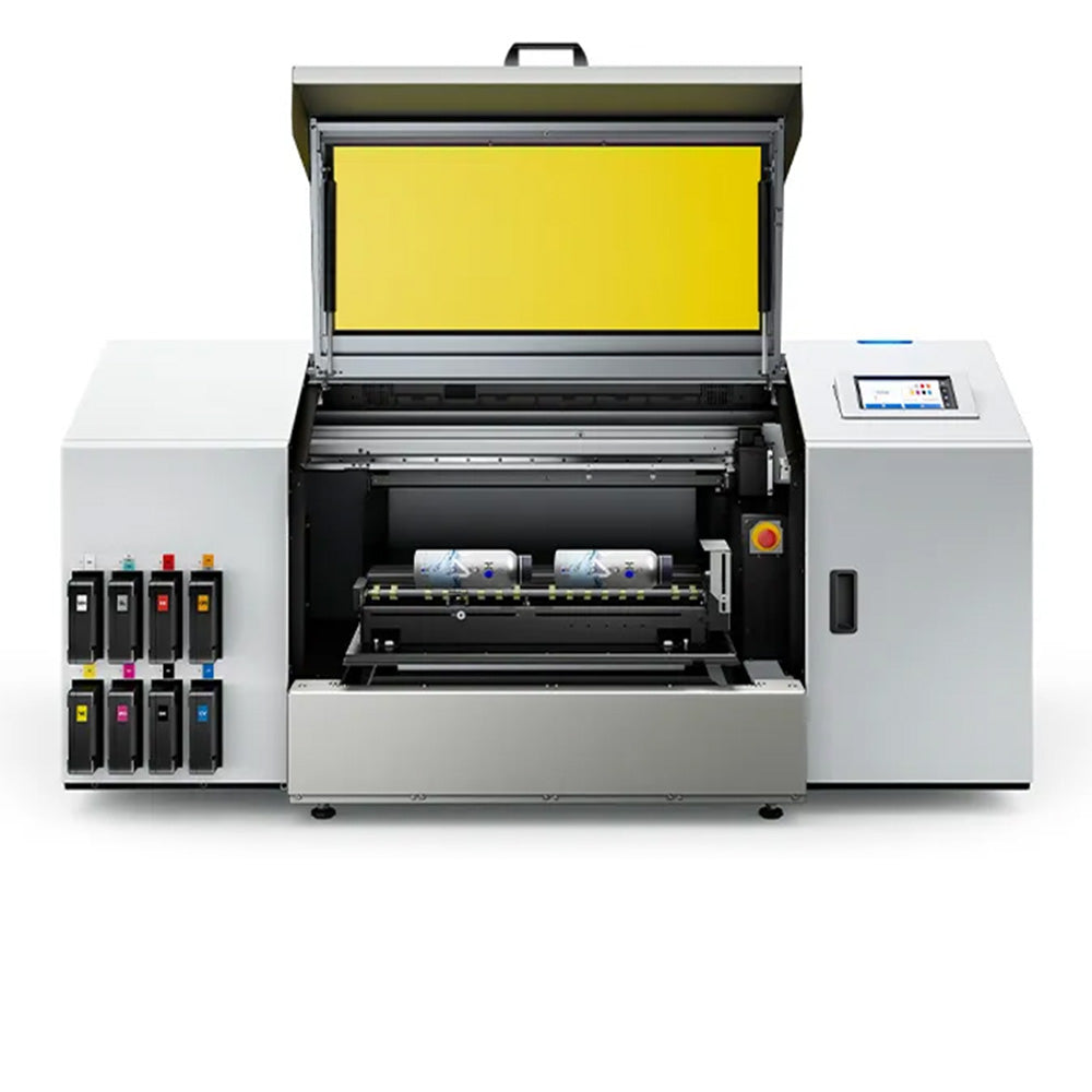 Thanks to Distance printing mode, bottles and flasks can easily be customized in large batches, or an optional rotary printing unit can be added, allowing users to print around the entire cylinder.