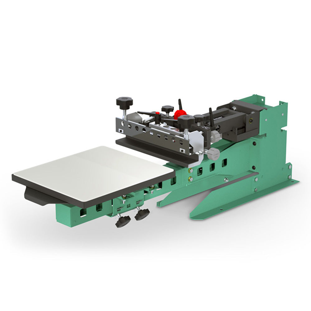 • The print head always locks into the "gate" at the same position, allowing off-contact adjustment with no change in the angle or position of the screen relative to the pallet. -