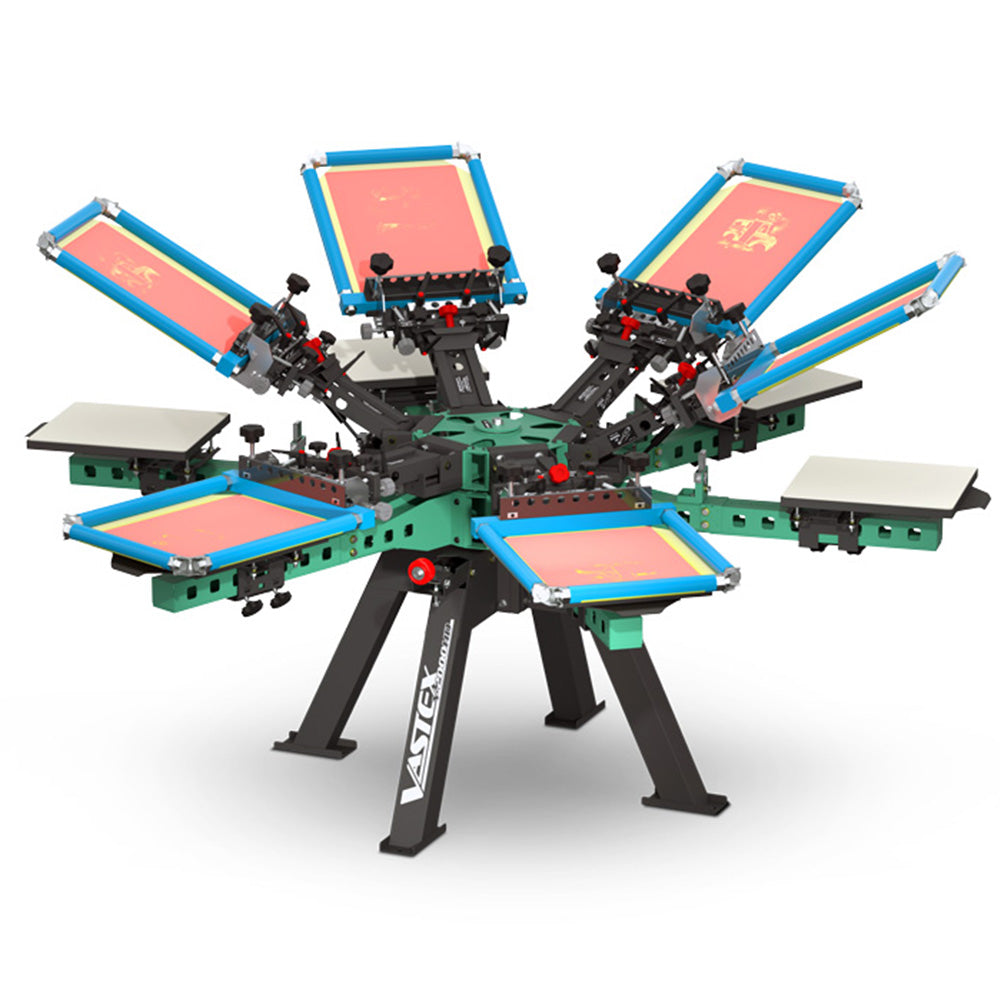 The Vastex rotor arm and pallet are the most heavy duty in the industry. Vastex is the only manufacturer of manual screen printing presses that can install a 40" sq. pallet without modification.