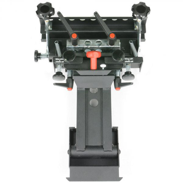 • Two black knobs flanking the red knob tilt the head (screen) up and down on the left and right sides respectively, compensating for warped screens and leveling the screen to the pallet.