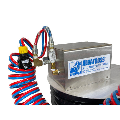 AlbaChem® SAFE-T-TACK PALLET ADHESIVE Albatross Safe-T-Tack is a non-flammable, non-V.O.C. water-based adhesive. It provides a long lasting pressure sensitive tack for your screen printing pallets. Using Safe-T-Tack will keep your press, floors and personnel clean. Safe-T-Tack can be brushed or carded on the pallets, or when applied with the pneumatic Albatross APS System or PSB spray guns, Safe-T-Tack obtains immediate tack with no overspray.