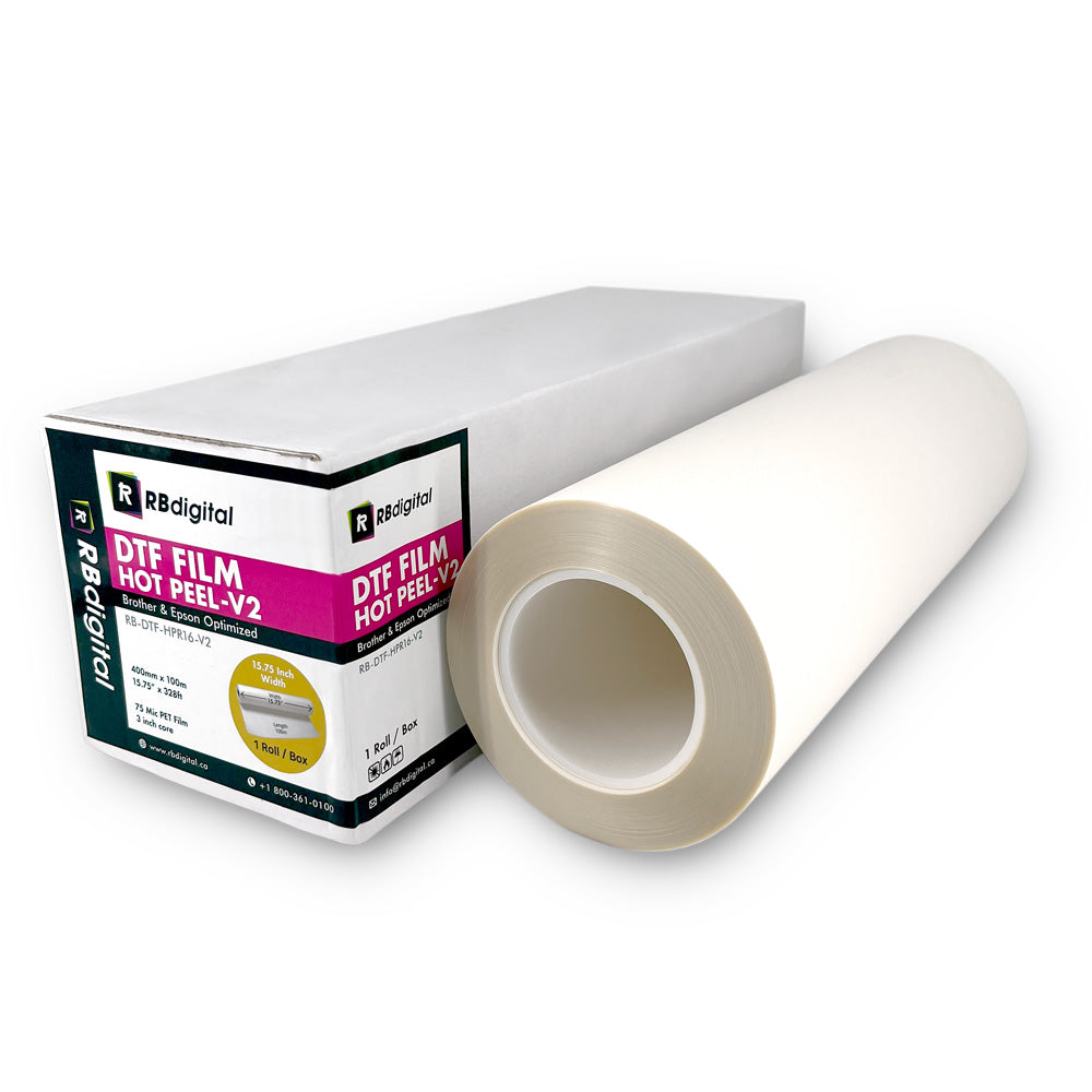 With our RB DTF Hot Peel Film, you can achieve either a glossy or matte finish for your print, depending on how you apply the film to the shirt. For a matte finish, cover your print with silicone-coated parchment paper before pressing with your heat press. For a glossy finish, use a Teflon sheet or a heat press with a Teflon-covered top when heat pressing the film.