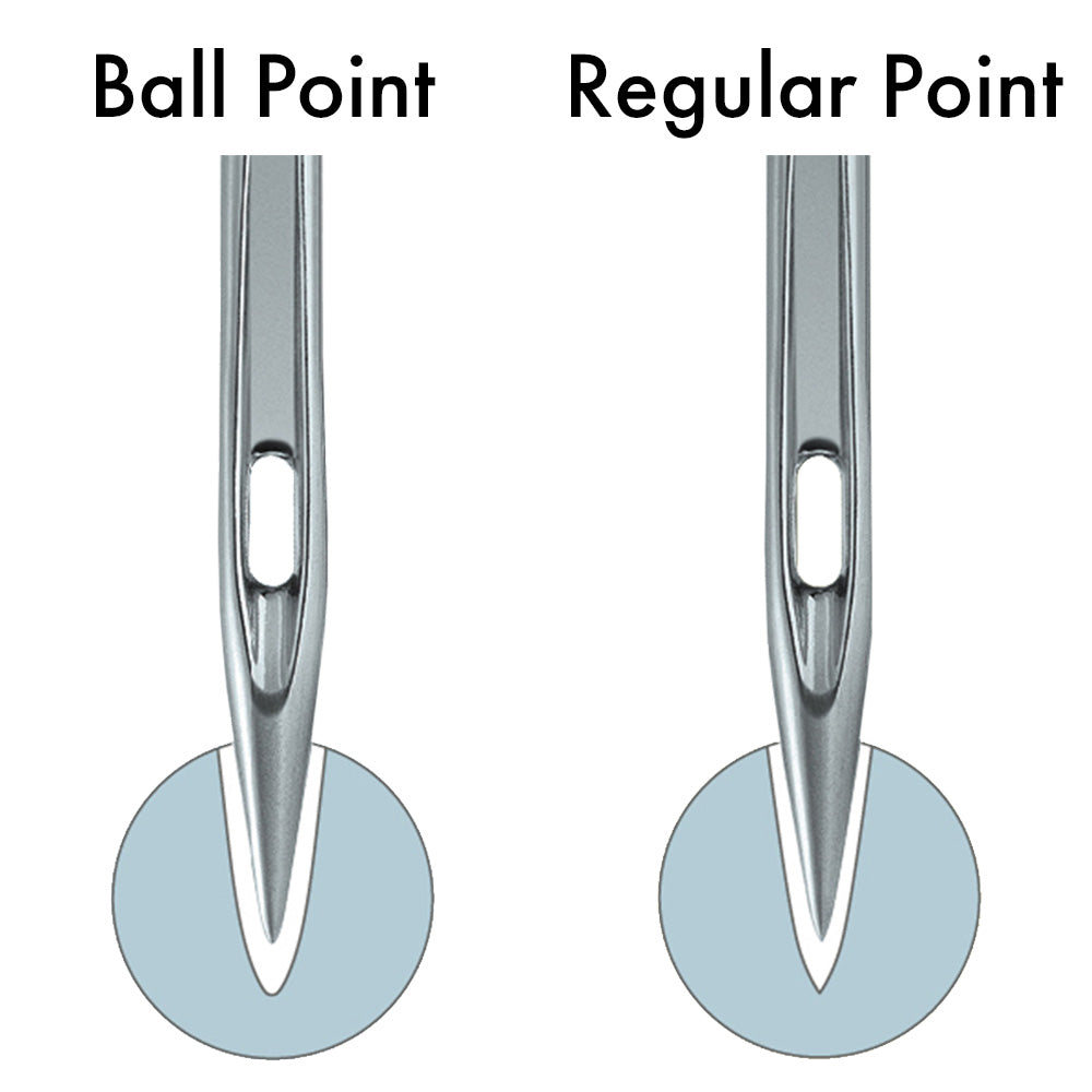 • When penetrating the material, the small ball point displaces the loops so that the material doesn‘t get damaged