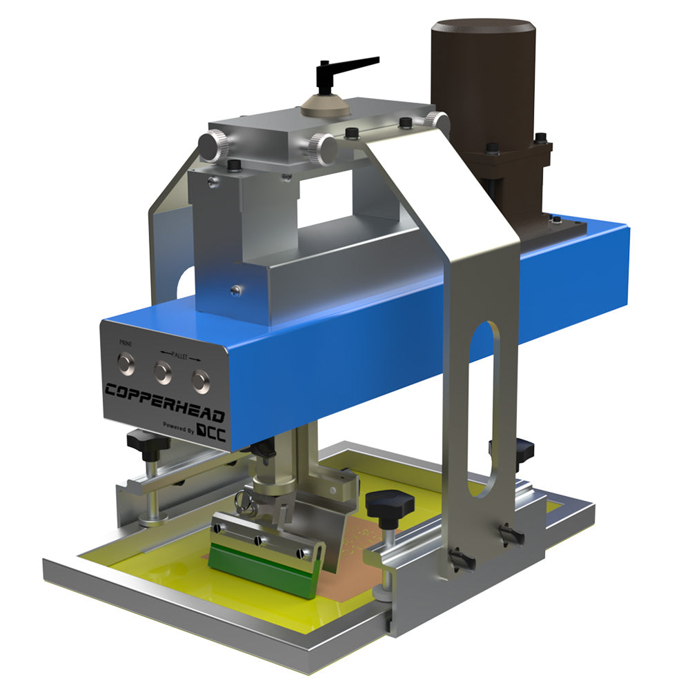 - Unique pallet arm invented to withstand excess squeegee pressure to achieve better print sharpness and uniformity