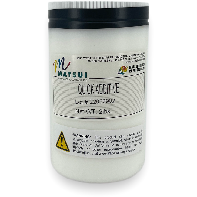 An Additive is a substance added in small amounts to something else to improve, strengthen, or otherwise alter it. Additives are used for a variety of reasons. They are added to ink, for example, to enhance wash fastness or extend open time in the screen or to adjust viscosities.  Additives in our industry especially when printing water base are very helpful when used properly and as recommended.