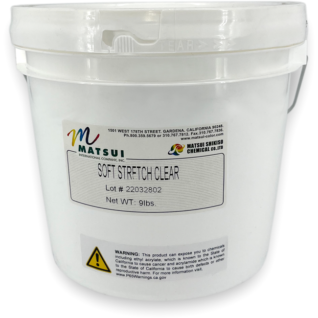 Soft Stretch Clear should be mixed in clean vessels using clean mixing blades and utensils. Any contamination from other ink sources or non-approved additives could make Soft Stretch White test positive for restricted PVC’s.