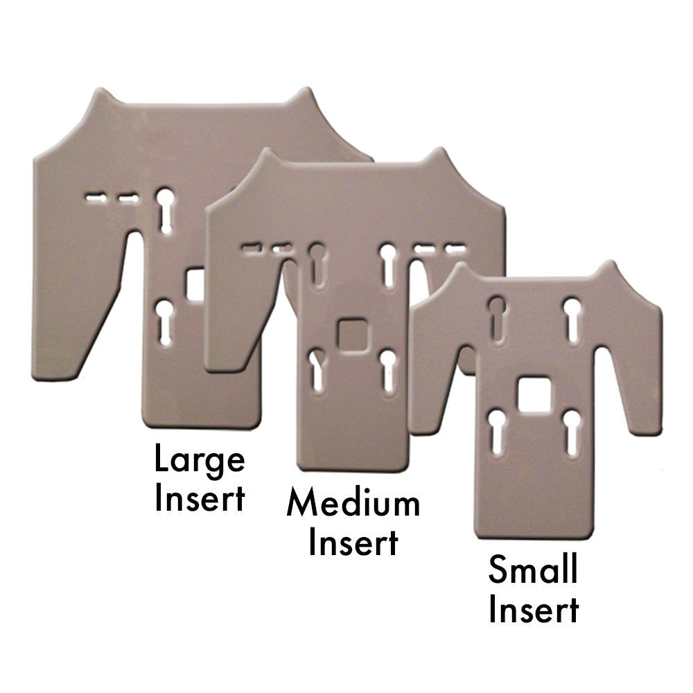 The Shoe Platen Inserts have a square hole cut out directly above the Large Pin on the Mounting Kit. There is a black square block that is mounted to the bottom of the Alignment Jig that fits into the cut out on the Shoe Platen Inserts to align it.